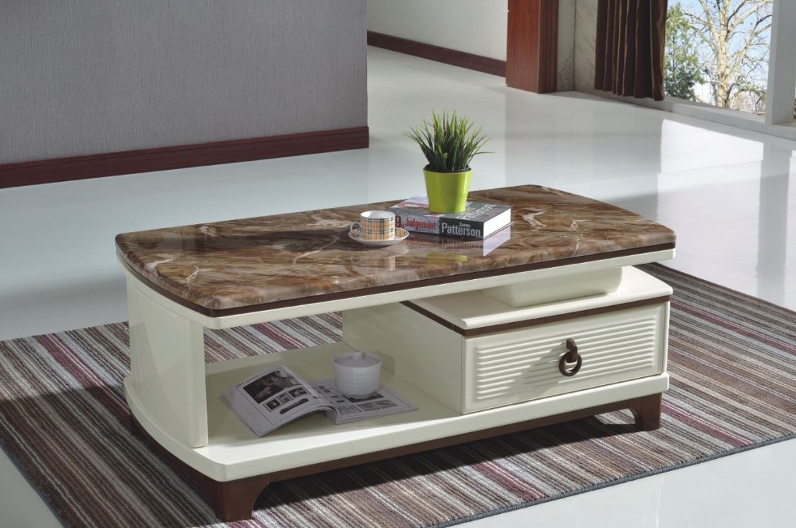 Một mẫu bàn trà mặt đá được thiết kế kết hợp với ngăn kéo, tiện dụng để cất những món đồ trong nhà khiến nhà ngôi nhà của bạn sẽ không trở nên quá bừa bộn và rối mắt.