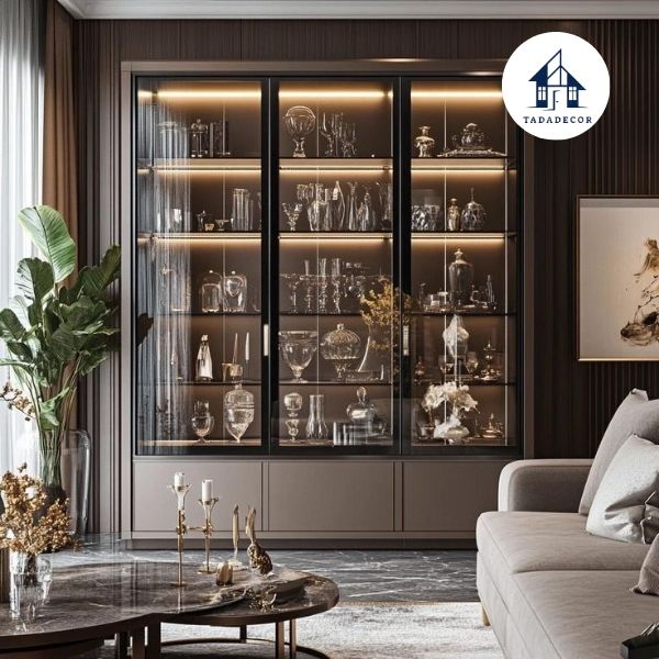 Sử dụng tủ kính để trưng bày bộ sưu tập sách, đồ gốm, hoặc các món đồ trang trí yêu thích.