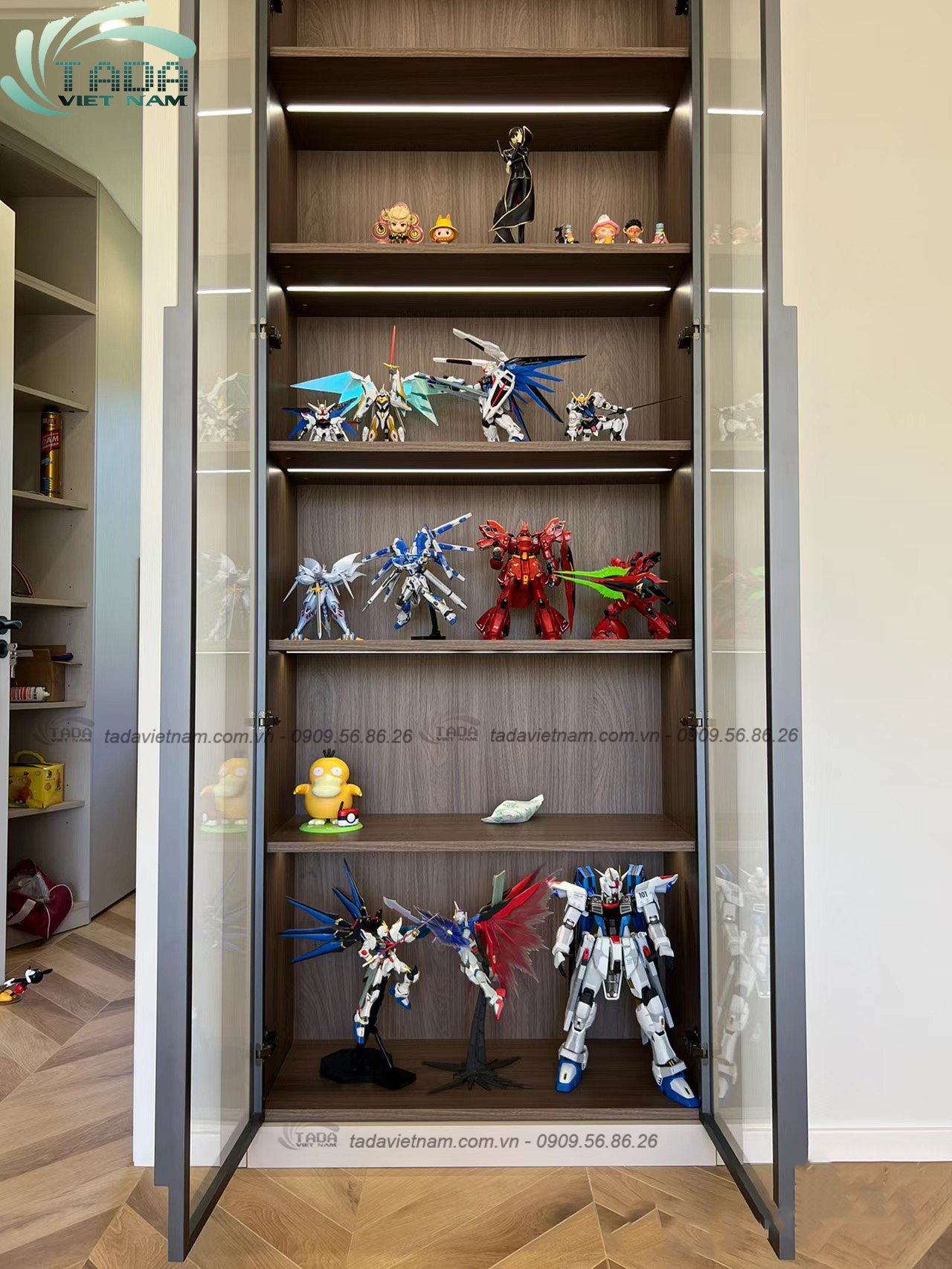 Ngoài ra, với mẫu tủ mô hình kiểu dáng đẹp mắt, các mô hình được trưng bày bên trong cũng trở nên nổi bật hơn, tạo nên dấu ấn mạnh mẽ hơn cả cho căn phòng.