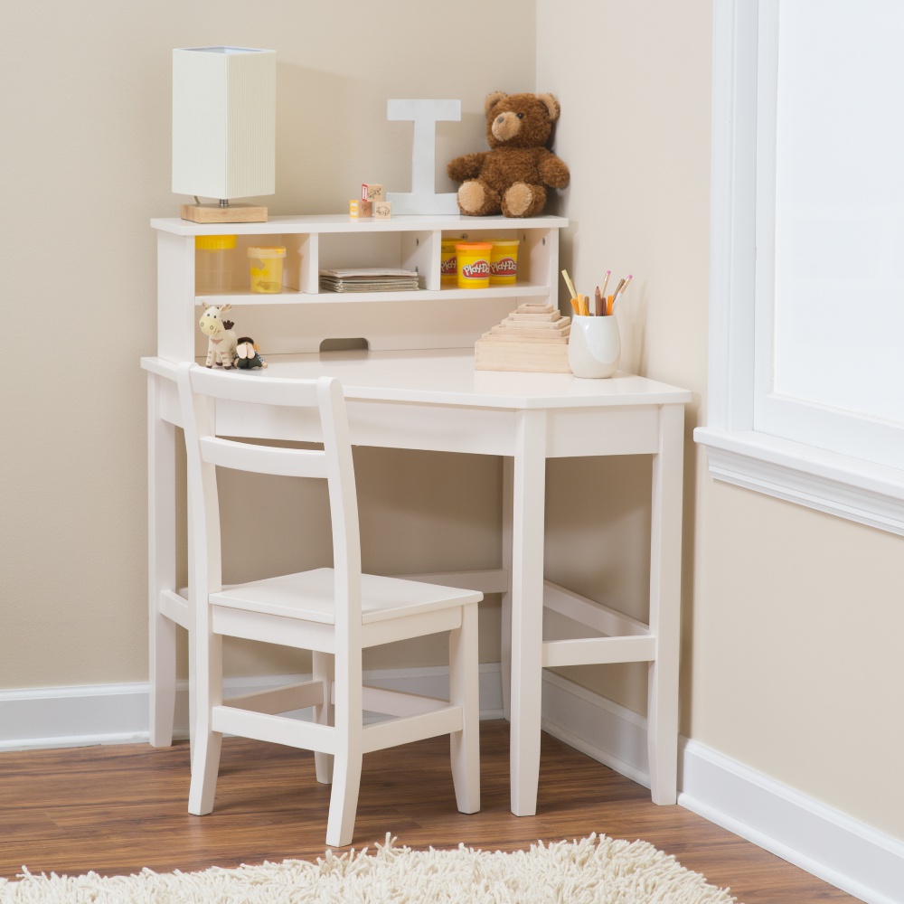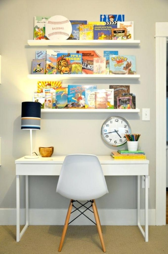 Đa số các thiết kế bàn học trẻ em đều được sơn màu trắng nhằm tạo cảm giác nhẹ nhàng thích hợp cho các bé yêu. Chỉ cần đầu tư thêm một vài ngăn kệ trên tường là đã tạo nên một góc học tập rất đẹp mắt cho bé rồi đúng không nào?