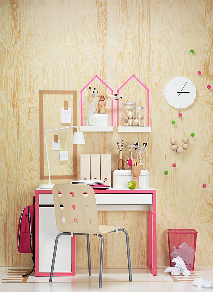 Đây chắc chắn sẽ là mẫu thiết kế bàn học vô cùng đẹp mắt cho những bé gái xinh xắn. Với tông màu hồng pha lẫn trắng đem lại cảm giác dễ thương bắt mắt thu hút bé ngồi vào bàn học mỗi khi đến giờ. Phần trang trí phía trên cũng rất thú vị giúp bé trưng bày những vật dụng yêu thích của mình.