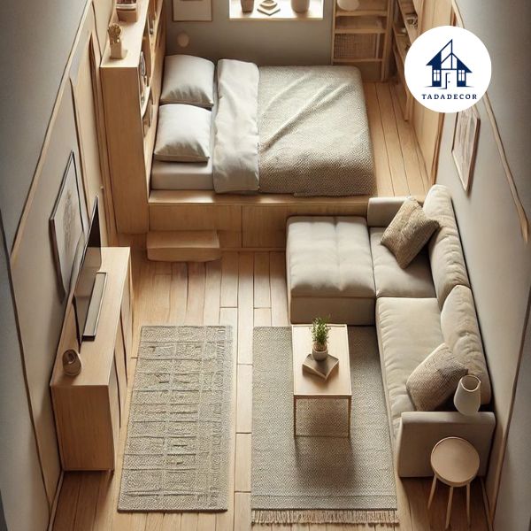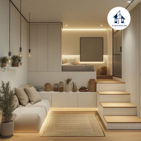 Tạo không gian thoáng đãng: Thiết kế thông minh giúp không gian phòng trở nên gọn gàng, giảm cảm giác chật chội, đặc biệt ở những căn phòng dưới 15m².