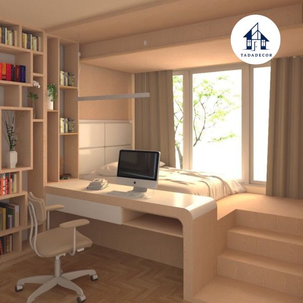 Một số mẫu giường liền tủ còn tích hợp bàn làm việc hoặc giá sách, phù hợp với người làm việc tại nhà hoặc học sinh, sinh viên.