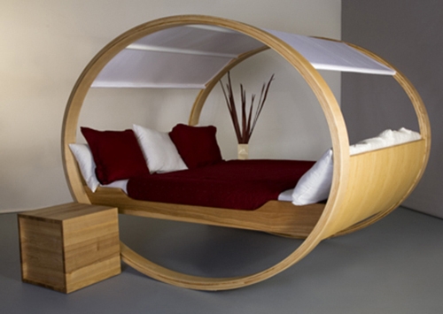 Thêm một mẫu giường ngủ đẹp mới lạ, cá tính cho những cặp vợ chồng mới cưới. Nếu như bạn là những người muốn khám phá những điều thú vị, thì mẫu giường này chắc chắn là dành cho bạn. Giường được thiết kế như một chiếc bánh xe khiến nhiều người lầm tưởng rằng chúng không được chắc chắn nhưng hãy nhìn phần ô vuông phía đầu giường, nó giúp cố định chiếc giường không bị xô dịch hay di chuyển nên bạn không cần phải lo lắng nhé.