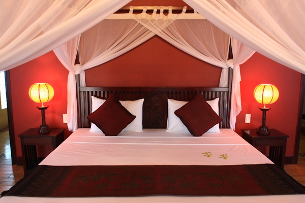 Một mẫu giường ngủ mang phong cách truyền thống cổ xưa có vẻ là một lựa chọn an toàn cũng như dễ dàng nhất cho các bạn lựa chọn. Với chất liệu bằng gỗ tự nhiên có màu sắc vân gỗ đậm đi kèm với đó là những chiếc đèn mang cổ màu đỏ vàng ấm ấp và phía bên trên được rủ màn tạo cảm giác nhẹ nhàng cũng như lãng mạng cho các cặp đôi vợ chồng son.