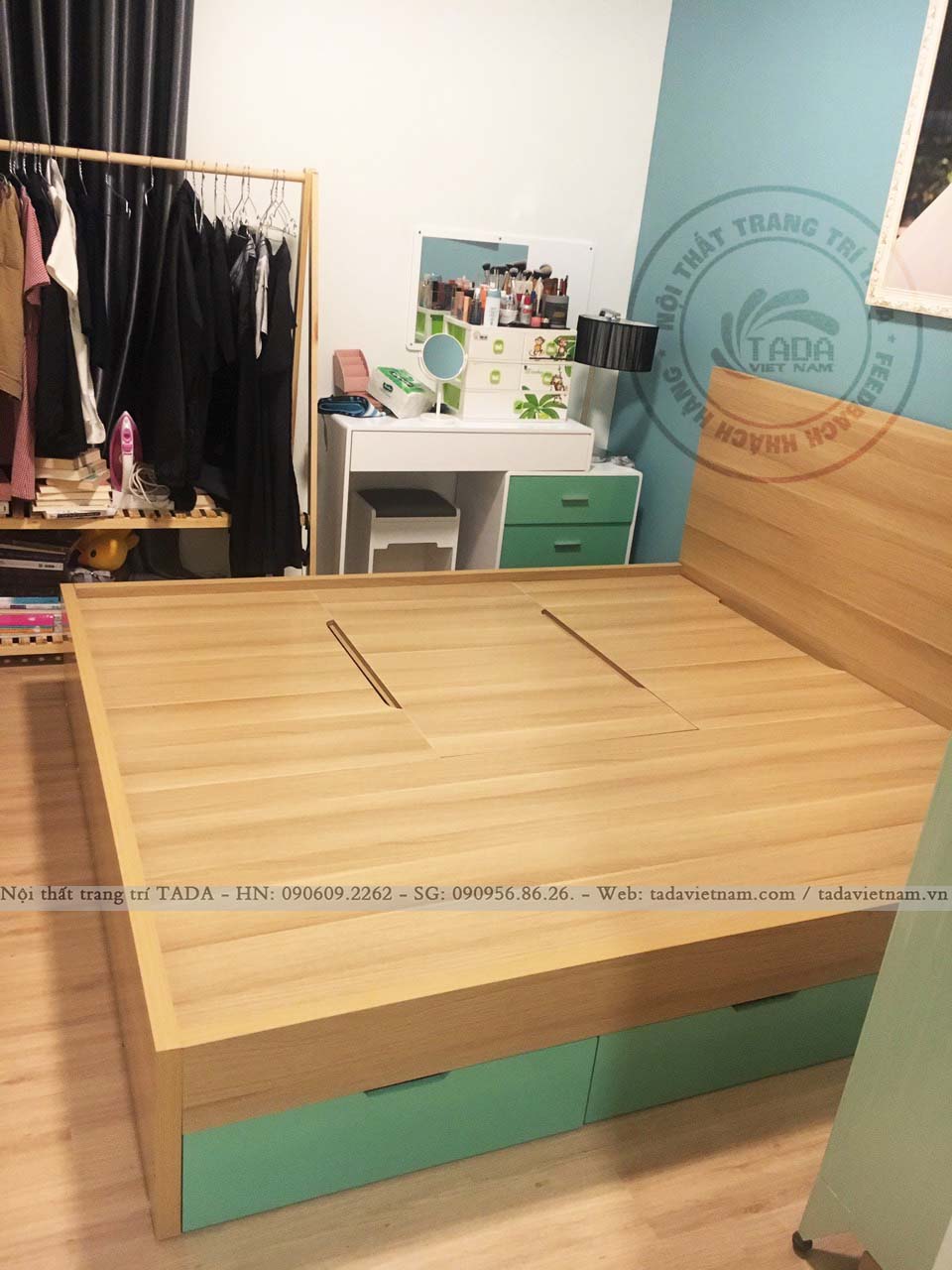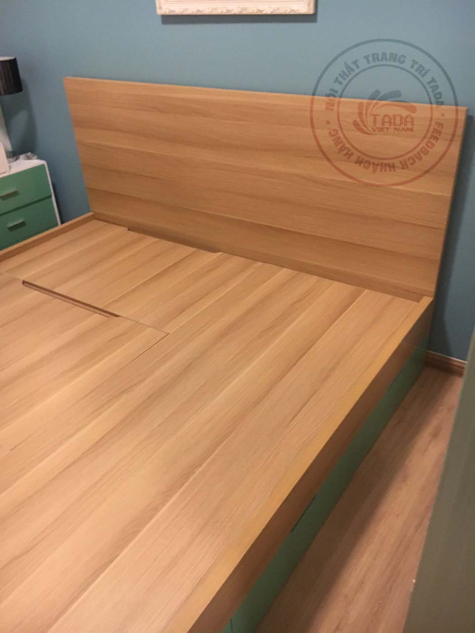 Giường ngủ kích thước 2mx1m8 mà sắc vân gỗ kết hợp xanh giá bán 7.800.000đ