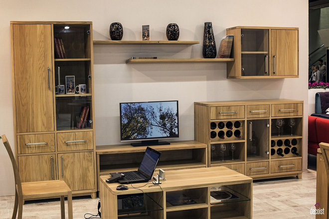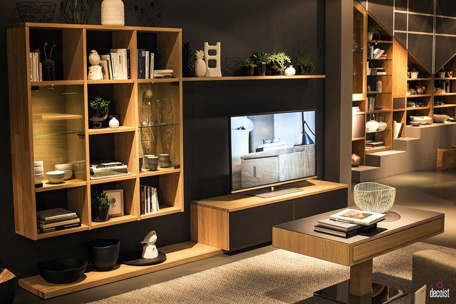 Nhà đẹp với mẫu kệ gỗ nổi ấn tượng