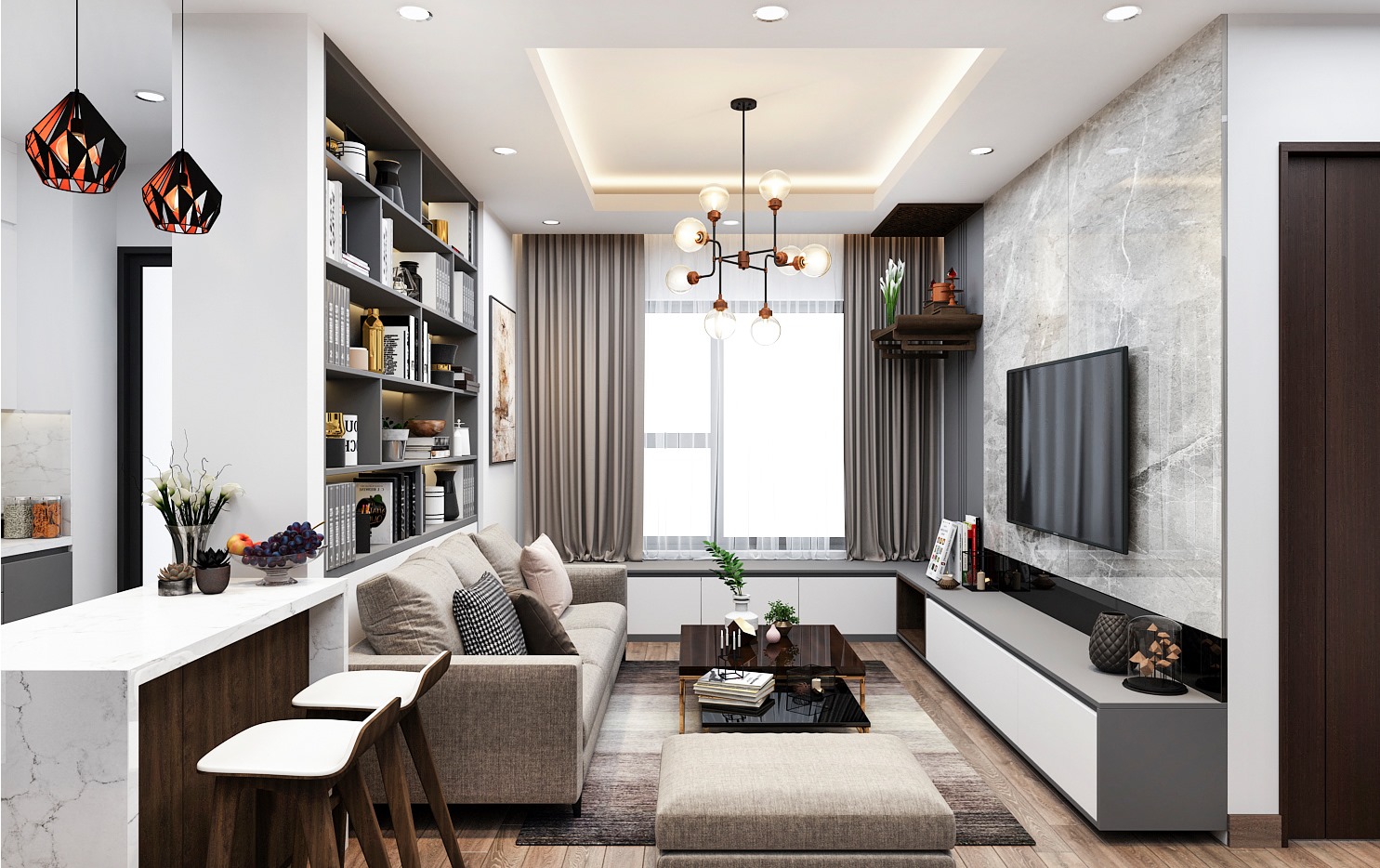 Một không gian sống hiện đại, mang phong cách của thời đại. Với mẫu thiết kế trẻ trung,năng động, bắt kịp xu hướng hiện nay thì mẫu thiết kế này đang được khá hiều người ưa chuộng với sự hiện đại tiện ích mà căn hộ mang lại.