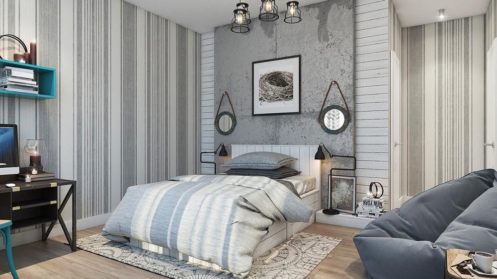 Phòng ngủ ấn tượng nhờ trang trí với tường bê tông