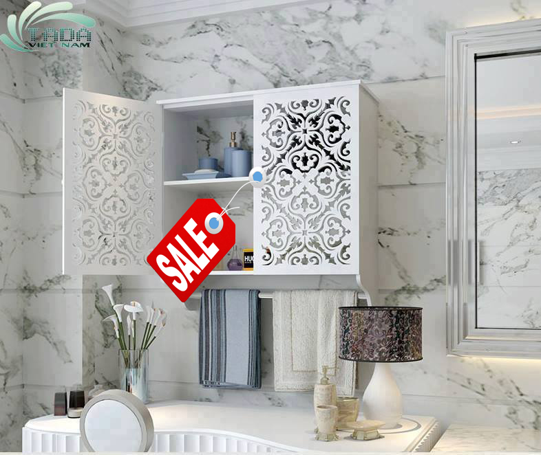 Kệ nhà tắm treo tường đa năng, kích thước cao 60cm rộng 59cm sâu 22cm, giá bán: 550.000VNĐ/ 1 tủ, giá sale: 450.000 VNĐ