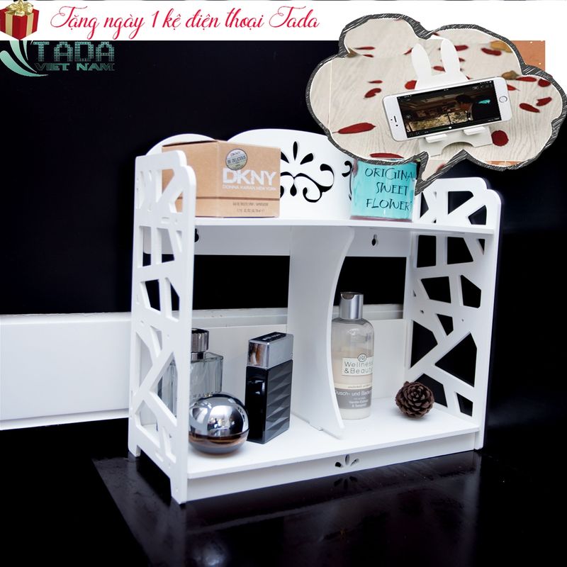 Kệ đựng mỹ phẩm hoa cúc cao 35cm rộng 36cm sâu 18cm, giá bán 350.000 VNĐ/ 1 kệ, giá sale: 300.000 VNĐ, tặng ngay 1 chiếc kệ điện thoại tiện dụng.
