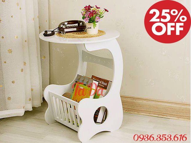 Bàn tròn đa năng kết hợp giá sách kích thước cao 60 rộng 45 cm, giá bán: 450.000VNĐ, giá sale: 400.000 ( Tặng khăn trải bàn)