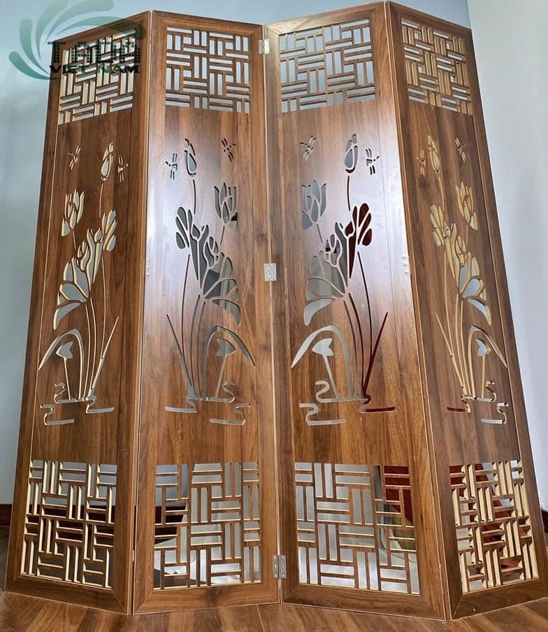 Sử dụng chất liệu và màu sắc phù hợp làm cho vách bình phong trở thành một bức tranh sống động.