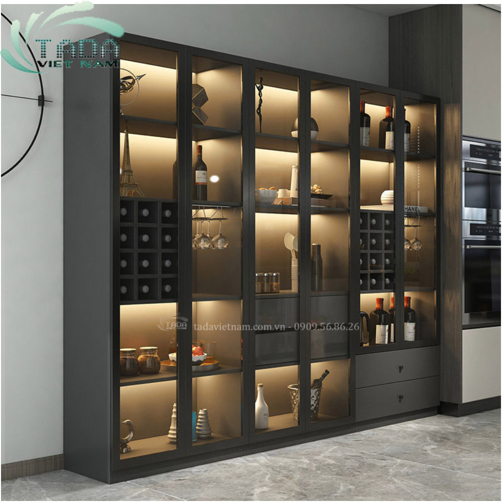 >> Tủ rượu khung nhôm cánh kính cường lực sang trọng chất liệu gỗ MDF thương hiệu TADA- TD16142