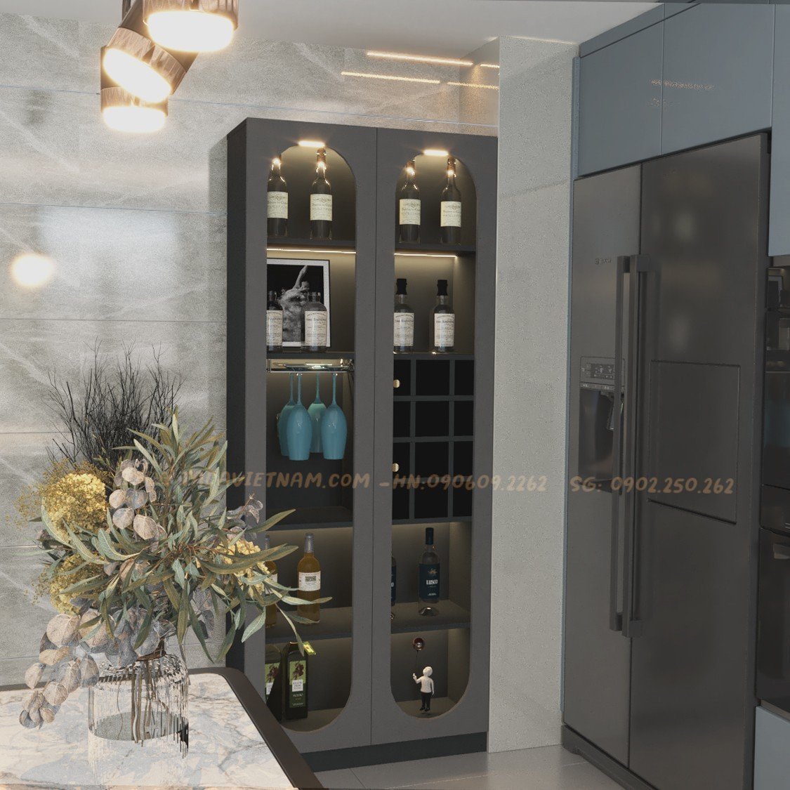 Sở hữu một tủ trưng rượu đẹp và độc đáo cho thấy sự đầu tư và sự quan tâm đến từng chi tiết trong thiết kế nội thất của gia chủ.