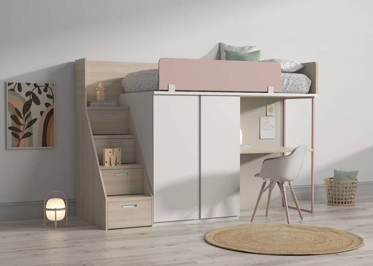 Mẫu giường tầng này đáp ứng nhu cầu của những người sống trong không gian nhỏ hẹp. Kết hợp giữa tủ quần áo nhỏ, đồng thời cũng là kết cấu phần cầu thang di chuyển lên xuống tiện dụng, bạn có thể yên tâm tận dụng không gian dưới giường để lưu trữ đồ dùng, sắp xếp quần áo. Trong khi không gian tầng 1 hoặc tầng 2 của giường tầng gỗ công nghiệp vẫn đảm bảo sự thoải mái khi ngủ, nghỉ ngơi.