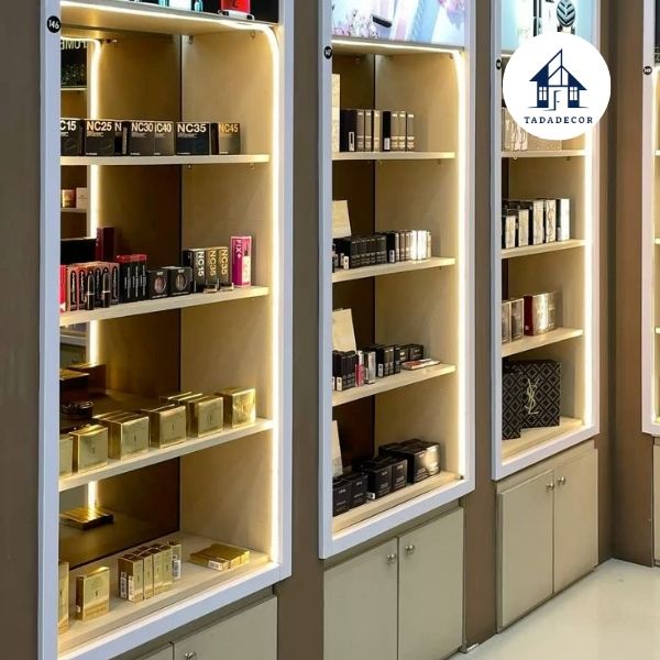 Mẫu tủ trưng bày mỹ phẩm sang trọng, hiện đại