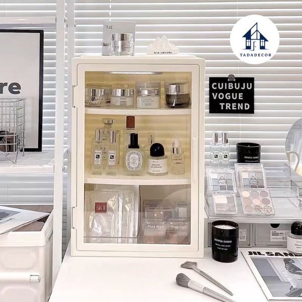 Tủ trưng bày giúp bạn sắp xếp mỹ phẩm theo danh mục, thương hiệu, hoặc giá thành, giúp dễ dàng kiểm kê và quản lý. Các mẫu tủ có khoang kín còn hỗ trợ lưu trữ sản phẩm dự phòng, giảm thiểu thất thoát.