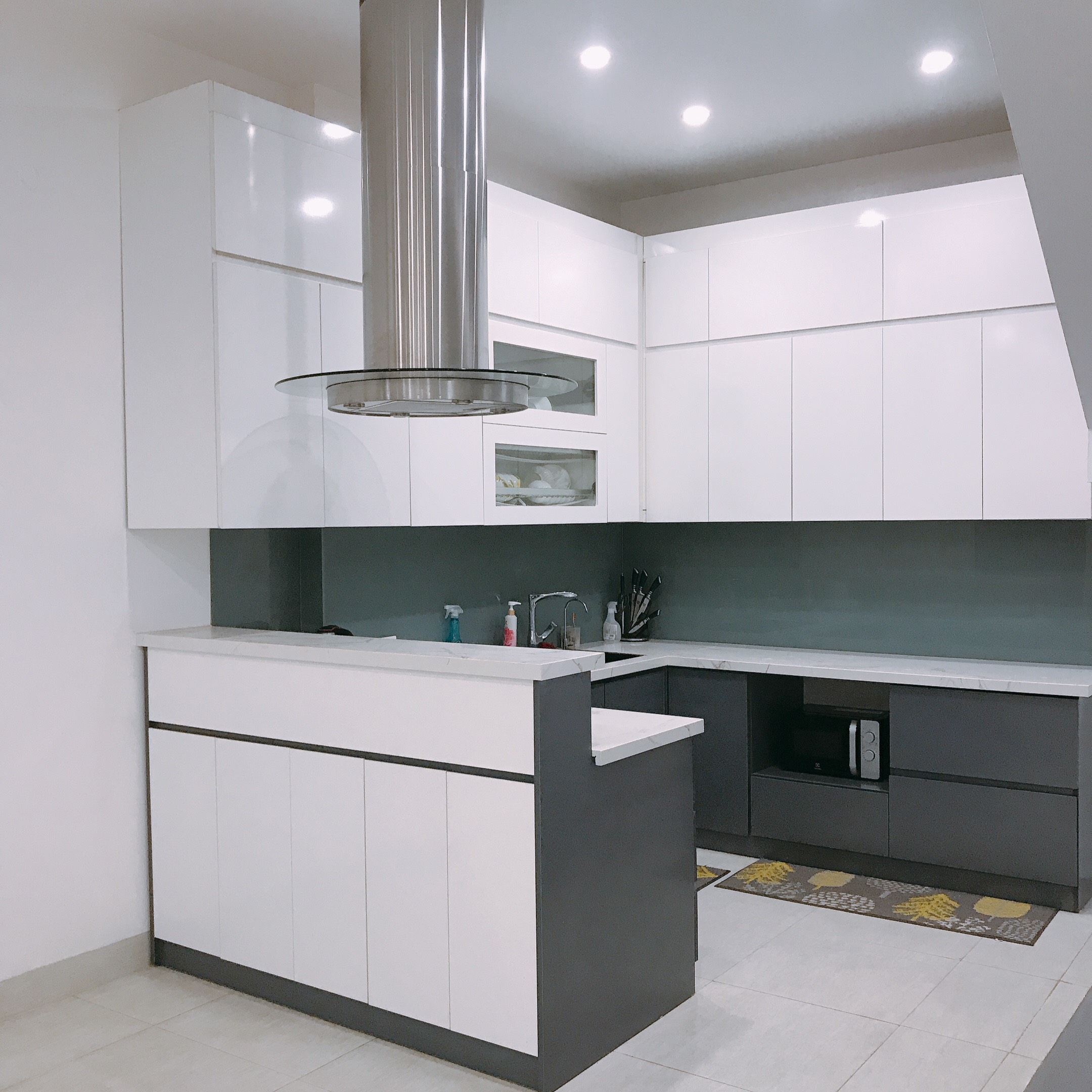 TỦ BẾP CHỮ U MÀU XÁM CÁNH TRẮNG TẠI NHÀ ANH TUẤN - HÀ ĐÔNG