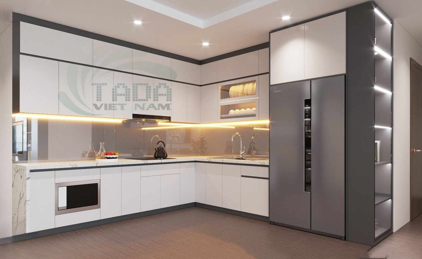 Tủ bếp gỗ công nghiệp chữ L kịch trần - sự lựa chọn hoàn hảo cho phòng bếp, thương hiệu TADA Việt Nam - TD3026