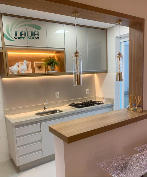 Tủ bếp kết hợp với quầy bar tiện nghi, sang trọng và độc đáo, thương hiệu TADA Việt Nam - TD3027