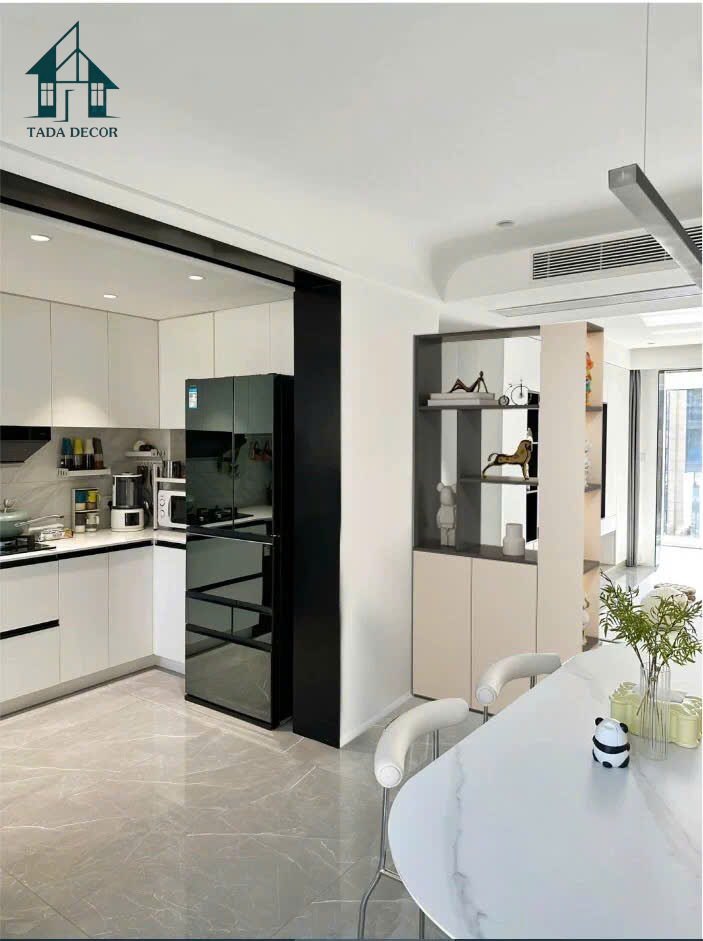 Trong nhiều căn hộ hiện đại, phòng khách và phòng ăn thường được thiết kế theo dạng không gian mở. Điều này giúp nhà rộng rãi hơn nhưng đôi khi lại thiếu sự phân chia rõ ràng.