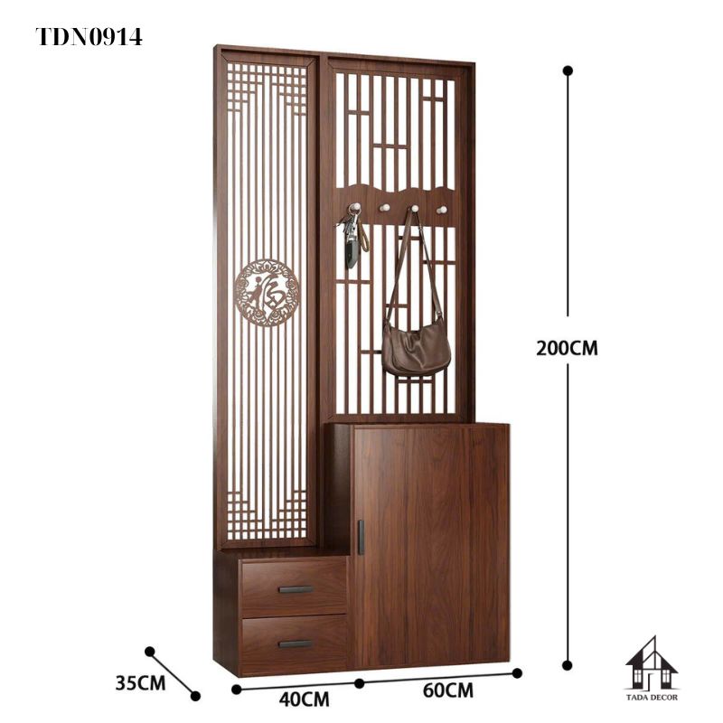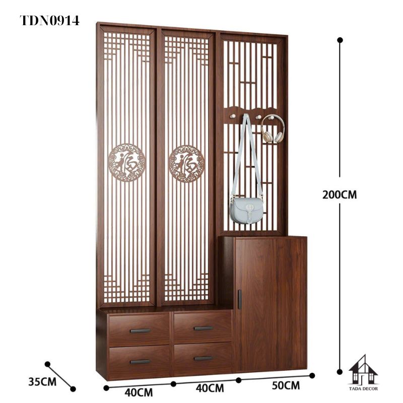 Cũng giống như tủ ngăn phối vách CNC TDN0901, mẫu TDN0914 không chỉ là vật dụng lưu trữ mà còn là “bức bình phong” mang lại vượng khí và may mắn cho gia chủ.