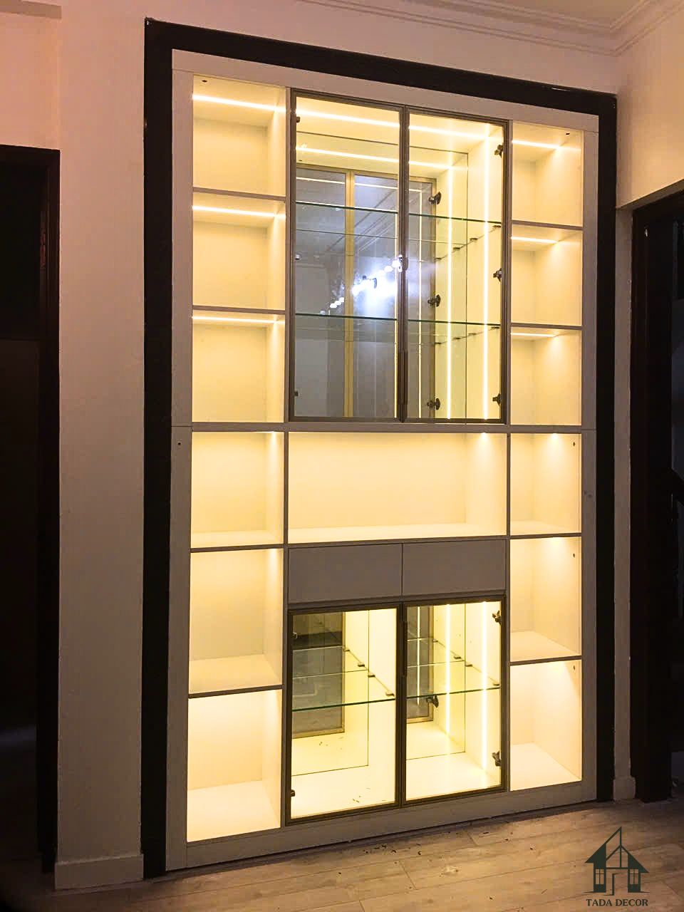 Tủ kính đựng rượu kết hợp trưng bày đồ trong phòng khách