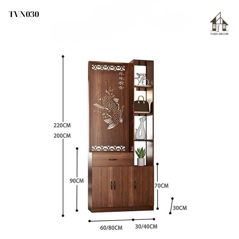 Tủ ngăn phối vách CNC phong thủy TVN030 – Giải pháp lưu trữ thông minh, tôn vinh không gian sống