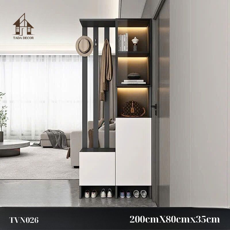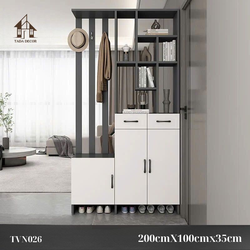 Chị Mai – cư dân của một căn hộ 65m² ở Hà Nội – luôn đau đầu với việc sắp xếp không gian phòng khách và lối vào. Mỗi khi bước vào nhà, mũ, túi xách, giày dép và sách báo đều chất đống, khiến căn phòng trở nên chật chội và thiếu thẩm mỹ. Sau thời gian tìm hiểu, chị quyết định lựa chọn tủ ngăn phối vách TVN026 – một thiết kế thông minh, vừa là tủ đựng đồ tiện ích, vừa đóng vai trò vách ngăn nhẹ nhàng, giúp không gian trở nên gọn gàng và tinh tế hơn bao giờ hết.