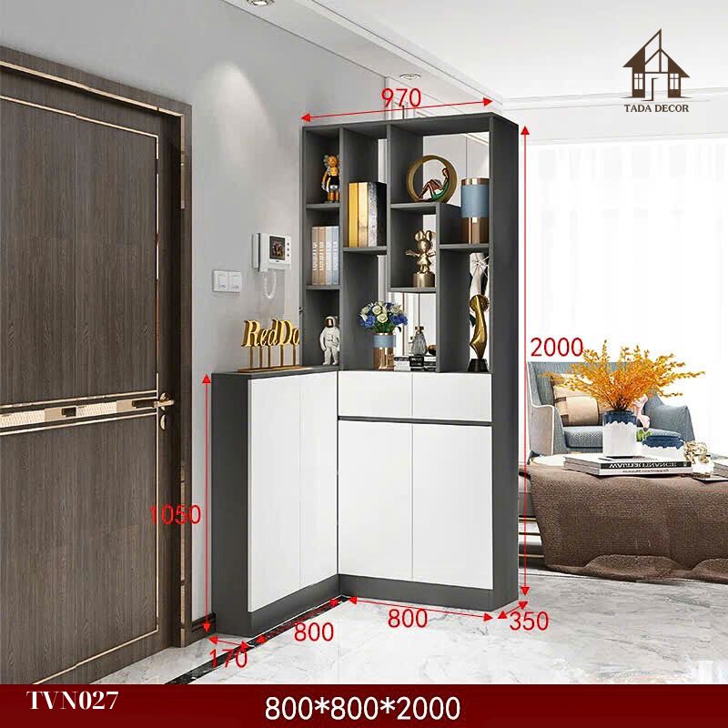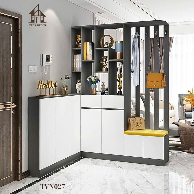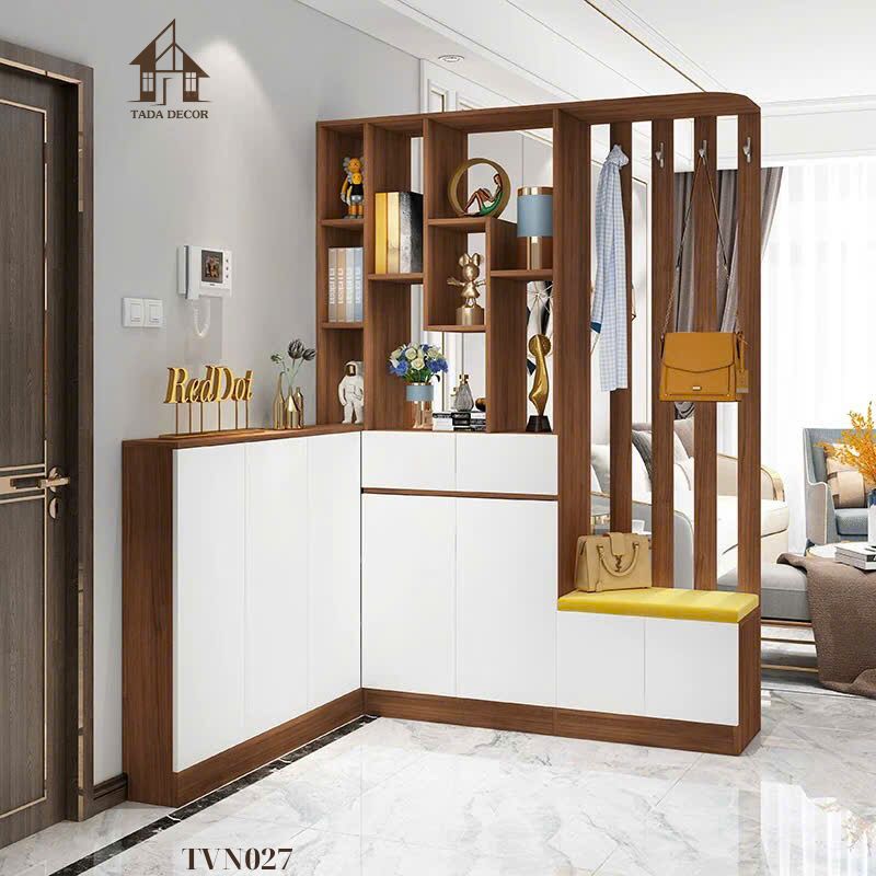 Tủ Ngăn Phối Vách TVN027 – Thiết Kế Chữ L Tối Ưu Không Gian Lối Vào