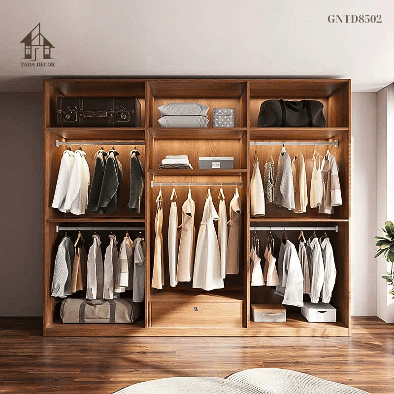 Điểm mạnh của tủ quần áo GNTD8502 nằm ở cách phân chia ngăn khoa học: