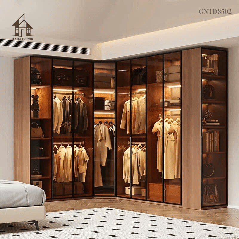 Trong xu hướng thiết kế nội thất hiện đại, tủ quần áo cánh kính ngày càng được nhiều gia đình lựa chọn bởi sự tinh tế, sang trọng và khả năng trưng bày đẳng cấp. Nổi bật trong dòng sản phẩm này, TADA Vietnam giới thiệu mẫu tủ quần áo gỗ công nghiệp GNTD8502, thiết kế kịch trần, kết hợp kính trà và hệ thống đèn LED, mang đến cho không gian phòng ngủ diện mạo thời thượng như một showroom thu nhỏ.
