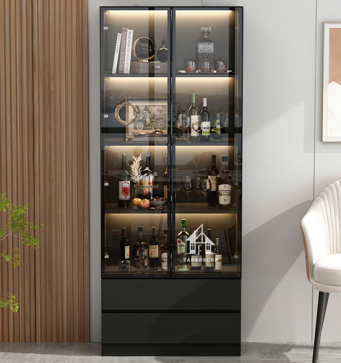 Với thời gian, sự phát triển của công nghệ sản xuất kính đã tạo ra những chiếc cánh kính đẹp mắt hơn, cho phép người dùng dễ dàng trưng bày các chai rượu, ly uống và đồ trang trí bên trong. Sự kết hợp giữa gỗ và kính tạo nên một nét sang trọng, đẳng cấp cho mọi căn phòng.