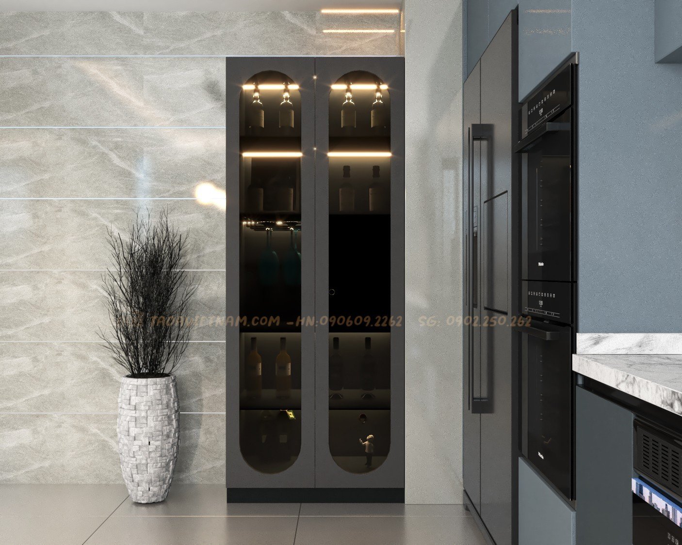 Điều này không chỉ tạo thêm một yếu tố thẩm mỹ cho không gian mà còn giúp tiết kiệm diện tích, đảm bảo hiệu quả lưu trữ, bảo quản rượu được tối ưu, chuyên nghiệp, đáp ứng tính tiện lợi khi có nhu cầu sử dụng rượu trong các bữa ăn, bữa tiệc gia đình.