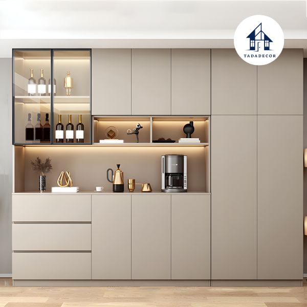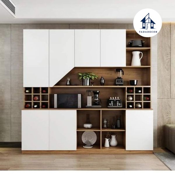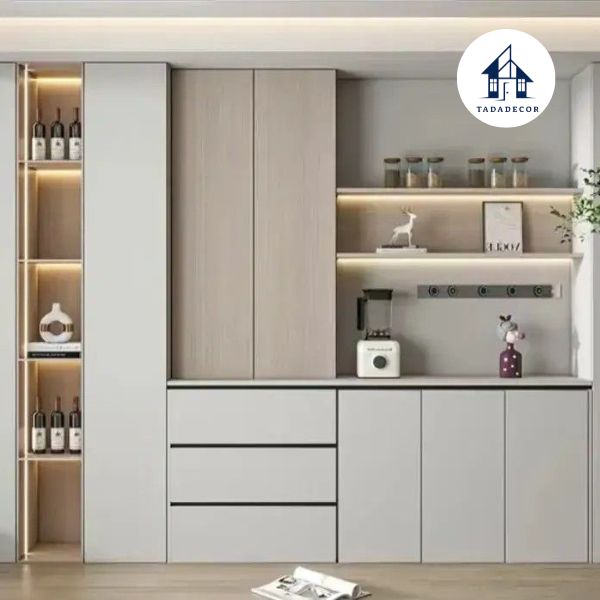 Tăng tính thẩm mỹ phòng bếp bằng tủ rượu kết hợp ngăn chứa đồ đa năng