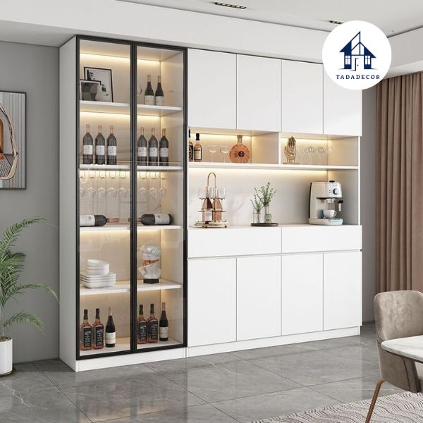 >> Xem thêm: Tủ rượu đẹp phòng khách chất liệu gỗ MDF thương hiệu TADA- TDTR30