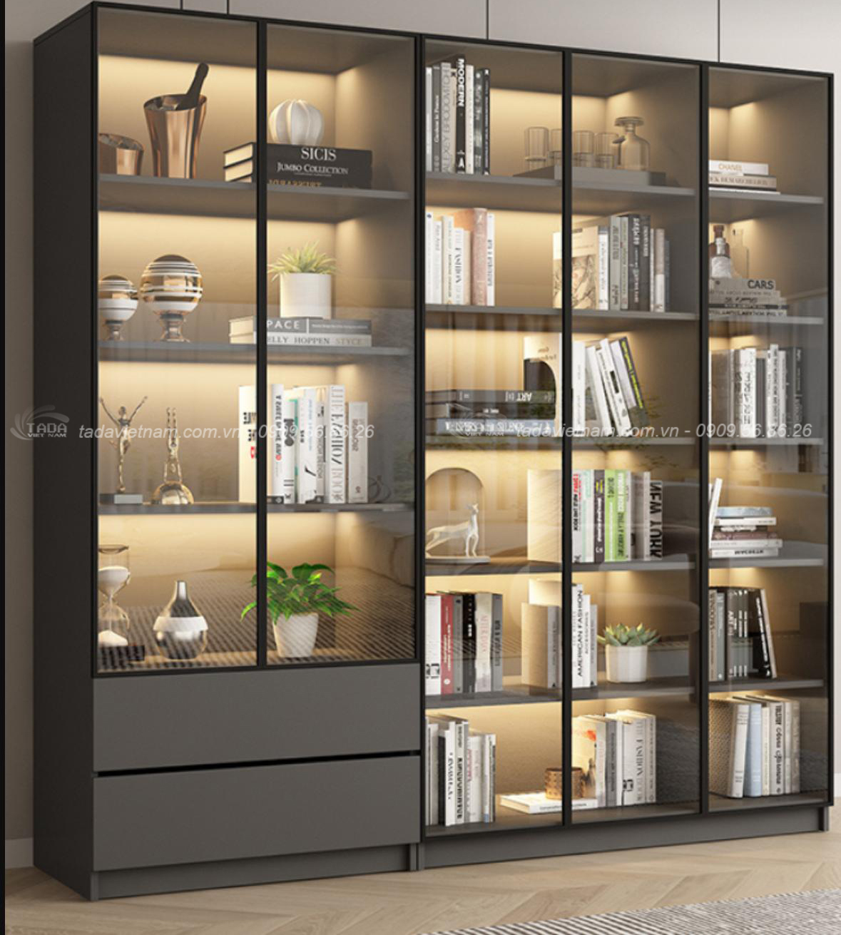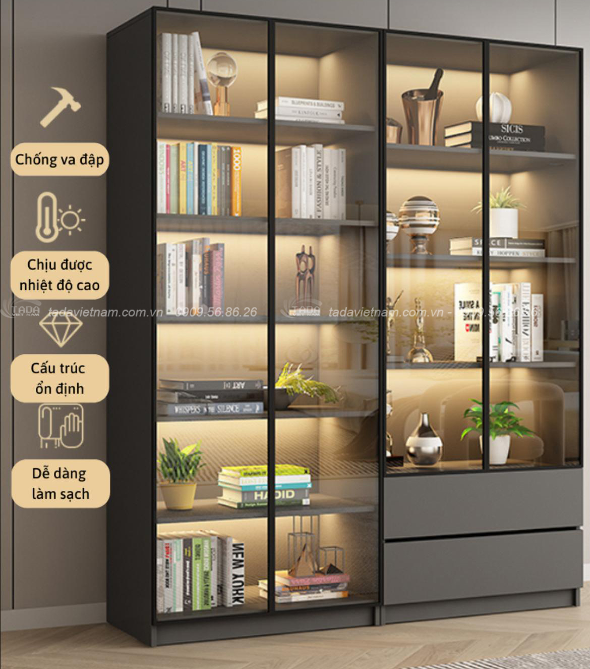 Tủ trưng bày phòng khách sang trọng, hiện đại chất liệu gỗ MDF thương hiệu TADA- TTB1