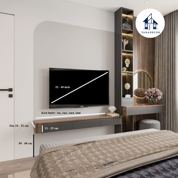 Trong xu hướng nội thất hiện đại, kệ tivi treo tường phòng ngủ đã trở thành lựa chọn hàng đầu nhờ khả năng tiết kiệm không gian, mang lại vẻ đẹp tinh tế và nâng tầm phong cách cho phòng khách. Tuy nhiên, để chiếc kệ không chỉ là nơi đặt tivi mà còn là tâm điểm thẩm mỹ, việc chọn kích thước phù hợp là yếu tố quyết định. Một chiếc kệ được thiết kế đúng chuẩn sẽ tạo nên sự hài hòa, tiện nghi và sang trọng cho không gian sống. Dưới đây là top những lưu ý chi tiết, được trình bày một cách sống động và dễ áp dụng, giúp bạn sở hữu kệ tivi treo tường hoàn hảo, chinh phục mọi ánh nhìn.