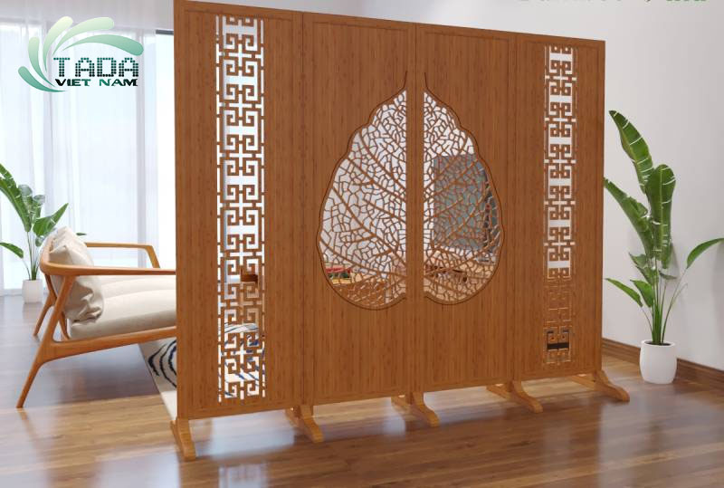 >> Vách bình phong hoa sen mẫu mới màu gụ, gỗ MDF thương hiệu TADA Việt