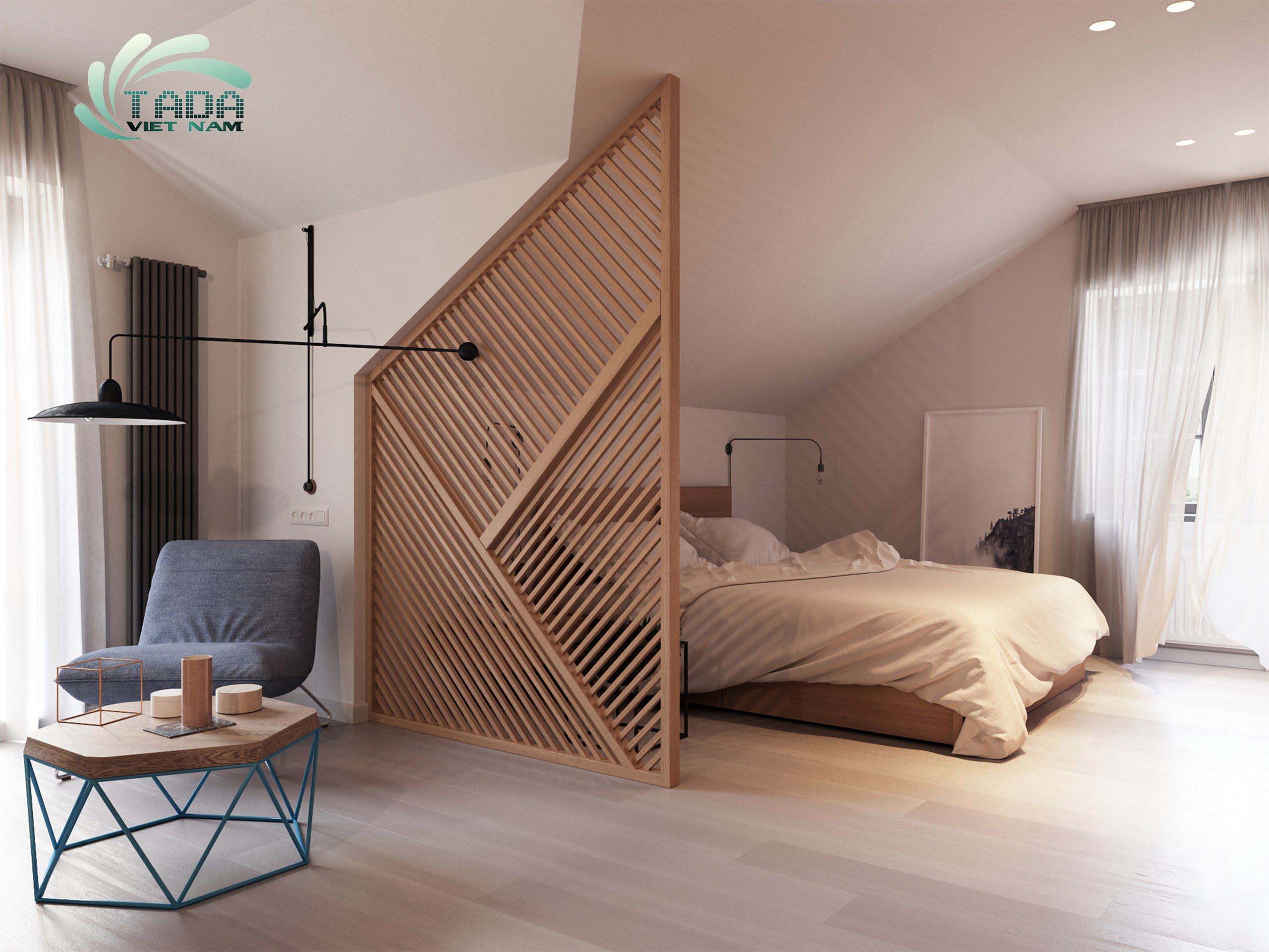 Vách ngăn bằng gỗ khá phù hợp với phong cách nội thất hiện đại