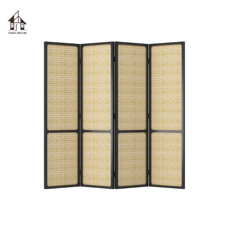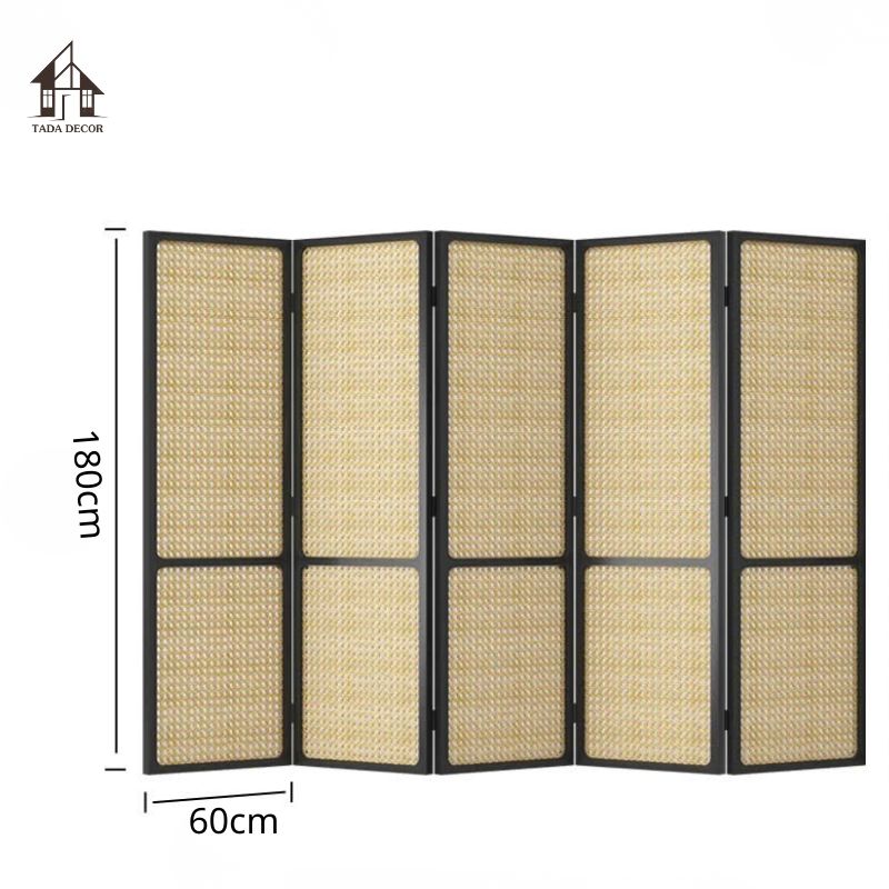 TDVBP902 gây ấn tượng mạnh nhờ phần khung gỗ MDF được sơn màu đen hiện đại, nổi bật trên nền mây đan mắt cáo mang tông vàng ấm. Sự tương phản màu sắc giúp chiếc vách trở thành điểm nhấn sang trọng trong căn phòng, phù hợp với nhiều phong cách nội thất như Japandi, Minimalist, Rustic hoặc Retro.