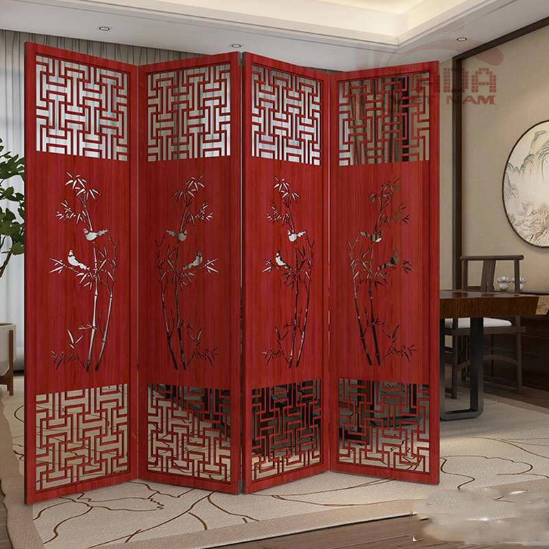 VÁCH BÌNH PHONG GỖ DI ĐỘNG HỌA TIẾT CÂY TRE TADA - TD954