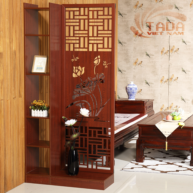 VÁCH BÌNH PHONG GỖ KẾT HỢP KỆ HOA SEN TADA - TD957