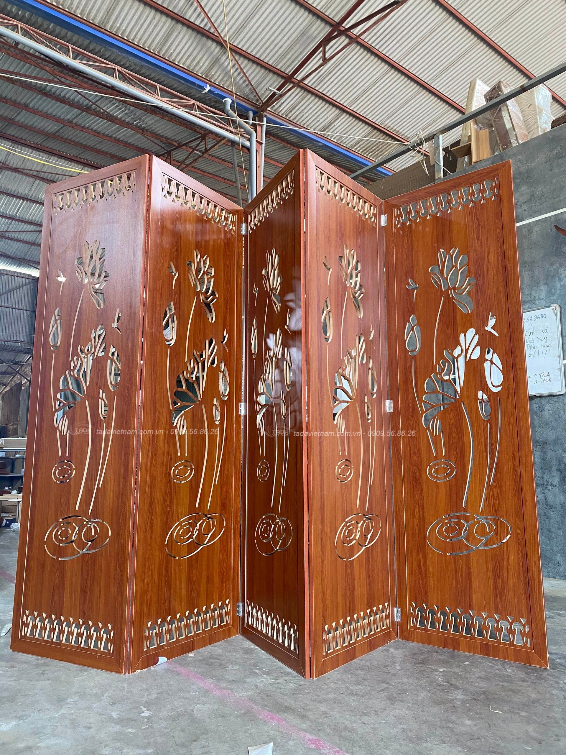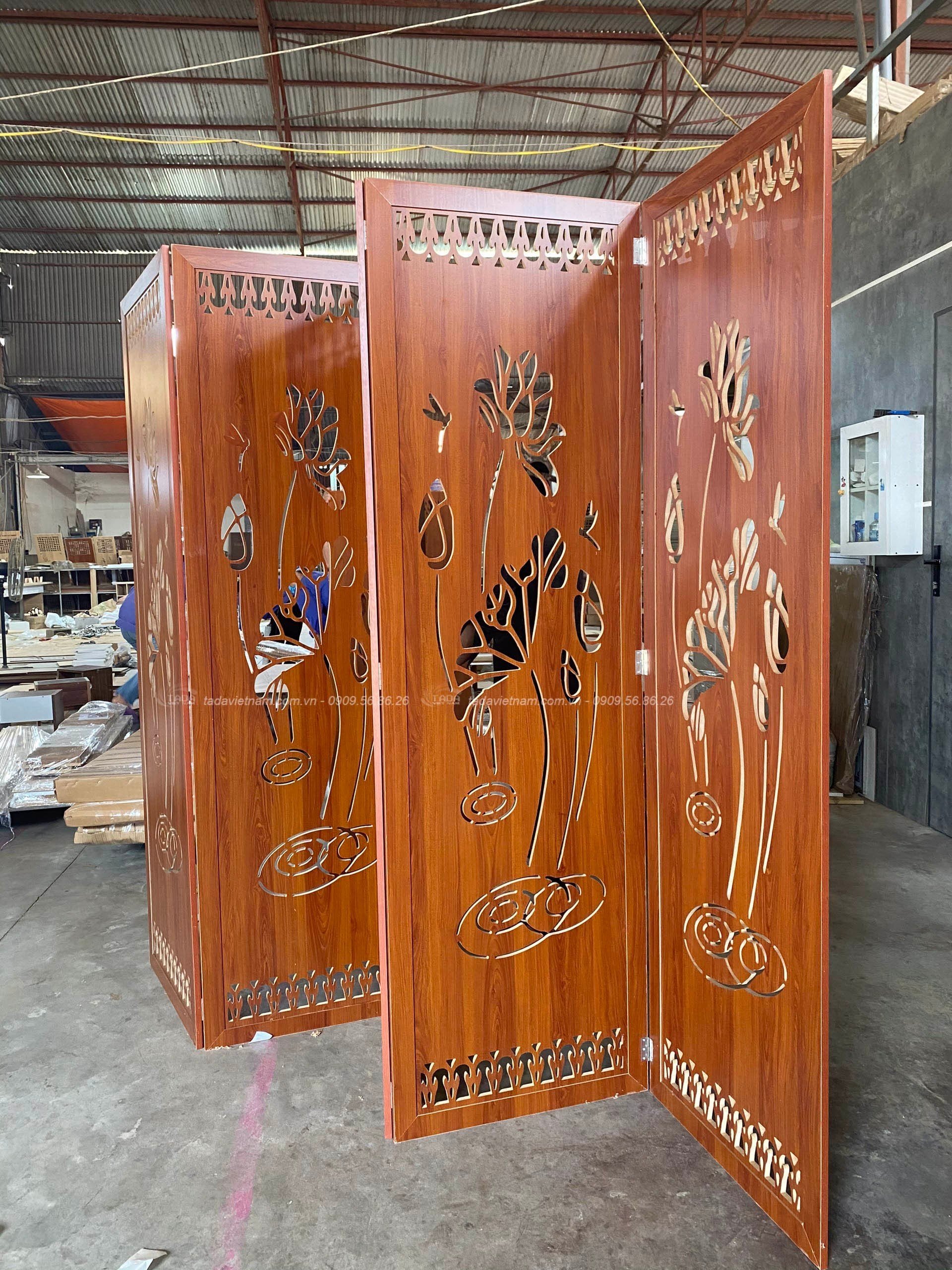 Vách bình phong hoa sen mẫu mới màu gụ, gỗ MDF thương hiệu TADA Việt Nam TDVN12