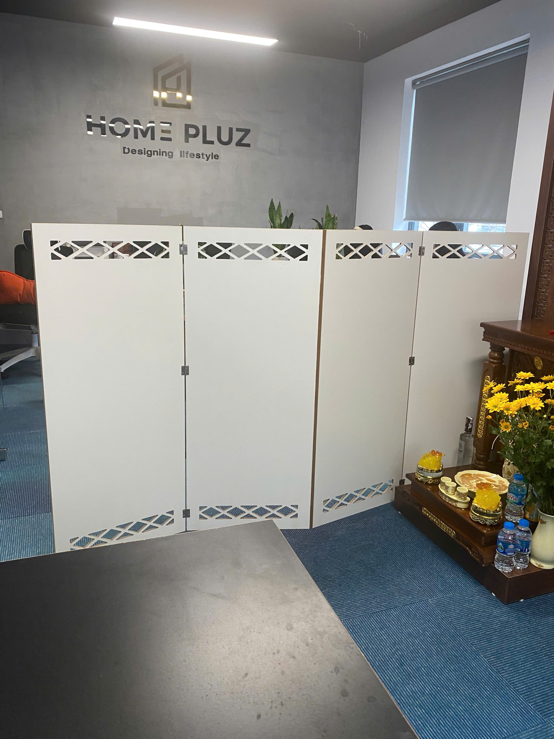 Vách Bình phong ngăn phòng di động họa tiết kín mới màu trắng viền gỗ - TDVN66