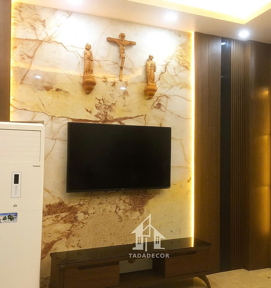 Phòng khách: tạo điểm nhấn sang trọng sau sofa hoặc đối diện kệ tivi.