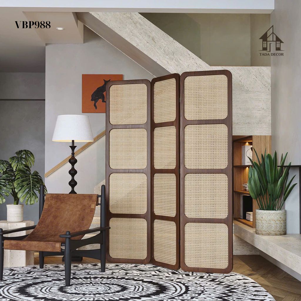 Vách mây mắt cáo VBP988 được thiết kế với cấu trúc đan mắt cáo đều đặn, mang tính thẩm mỹ cao và hiệu quả trong việc phân chia không gian. Sản phẩm sử dụng tông màu óc chó trầm ấm, tạo nên vẻ đẹp sang trọng nhưng vẫn giữ được cảm giác gần gũi, tự nhiên.