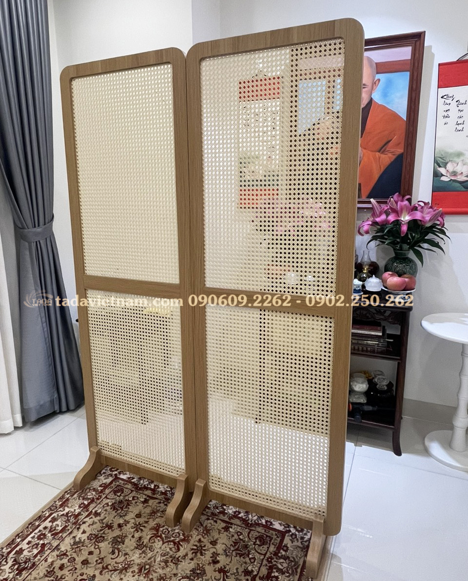 Vách ngăn phòng bình phong kết hợp mây mắt cáo