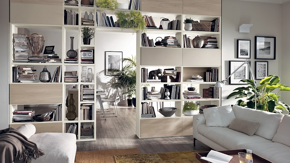 Kết nối không gian các phòng lại với nhau là xu hướng đang trở nên thịnh hành trong các ngôi nhà hiện đại, tạo cảm giác thoáng đãng, không khí lưu thông qua các phòng và tận dụng được tất cả các nguồn sáng . Kệ trang trí phòng khách giúp bạn ngăn phòng giúp ánh sáng xuyên qua nhưng vẫn tạo được sự tách biệt giữa các phòng với nhau